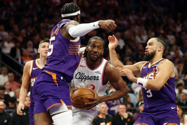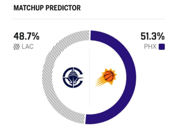 比赛开始前,ESPN的预测模型显示快船胜率不足50%。 哈登因个人原因缺席,太阳则带着三连胜的气势坐镇主场。 但伦纳德从开场就展现出强烈攻击欲望,首节便通过自投自抢和强硬突破连续取分。 快船在首节结束时以24-20领先,奠定了比赛基调。